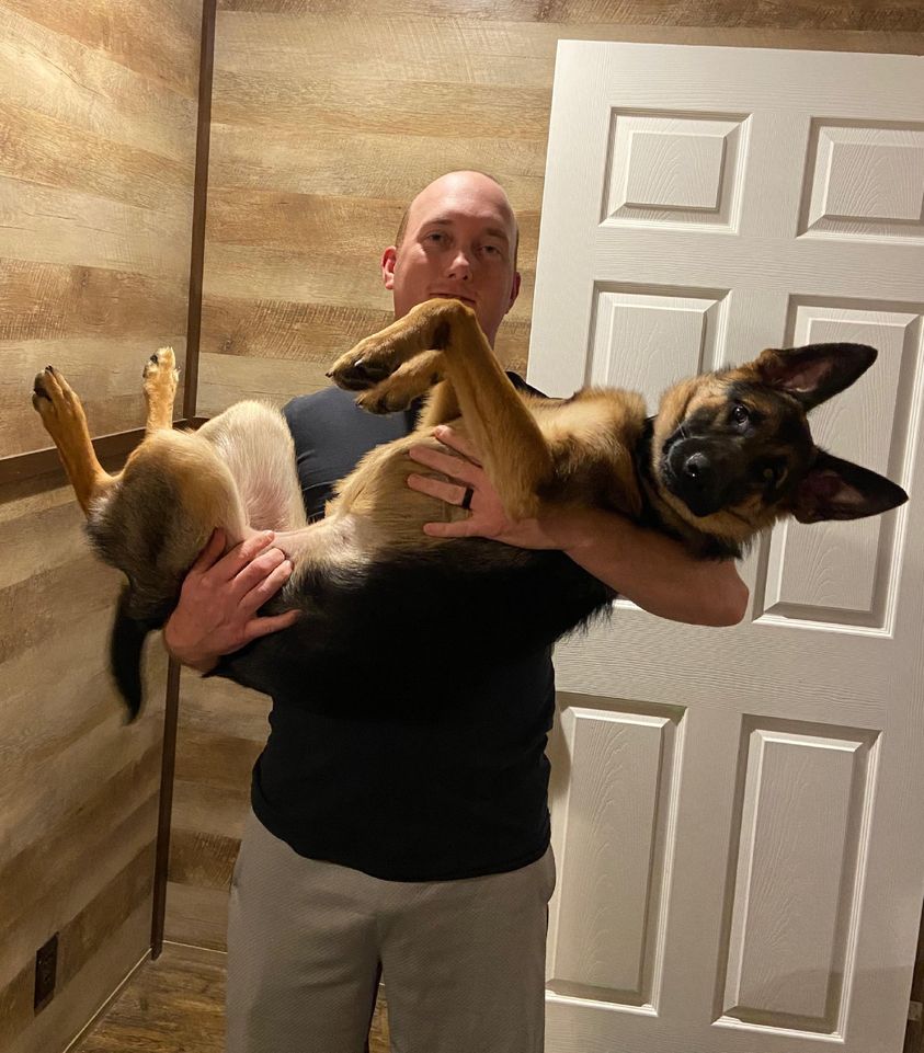 Bella loves Brad, and the feeling is clearly mutual. We didn’t expect him to use her as a weight-lifting tool, but we do always say our service pups serve many purposes for their Veterans!