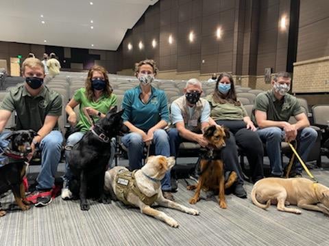WHAT a lesson!!! We are proud to announce our Monthly Group Training Program continues to grow and our teams continue to progress! We have had FOUR teams pass the AKC Canine Good Citizen test in the last two months, we have one team working their Public Access test in hopes of graduating in June, and recently welcomed SEVEN new Veterans to the Program! Major, one of our dogs in full training, had his Veteran Mark come to visit this month in preparation for their transition in June. Also, our very first full training dog Tuve, came for her 2-year check-in with her Veteran Jeff and learned some new skills while she was here. Keep an eye out for some exciting upcoming posts as we are needing to adopt three dogs for Veterans in our Group Program, and already have two potential candidates! Continue to stay safe!