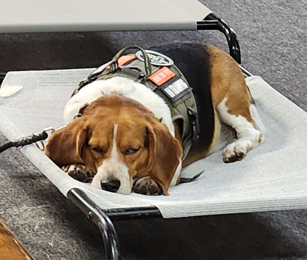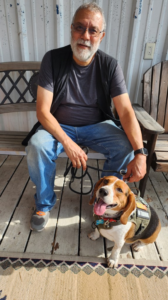 Bogie is Alan’s best friend. Bogie is at Alan’s side, even if it takes him a minute to get there… Bogie likes to work at his own pace and took his time becoming a Service Dog! And we love him for it!
