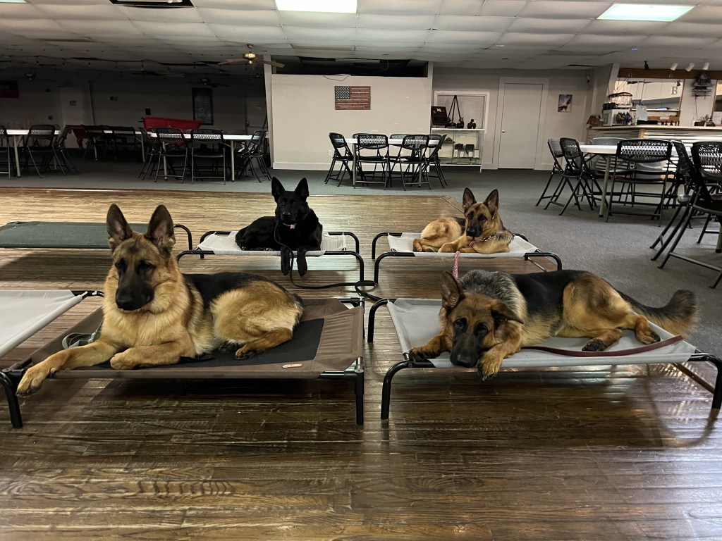 “I can’t say enough about the Rescue for PTSD. Having already had a GSD for several years, I had a great desire to have Drake trained as a Service Dog. Although we initially started out very hesitant due to past experienced, the Rescue for PTSD encouraged us to get outside of our comfort level and grow as a team. It was truly difficult to come in for the first time. But seeing how Drake reacted to my anxiety during the initial training classes, I knew this was the place for us. The small class size offered an environment where we felt safe, and the interactions of the other veterans, volunteers, and staff were truly caring. This environment allowed me to focus more on Drake, rather than my anxiety levels due to the things around me. Thanks to the Rescue for PTSD, we now have a place to relate to others, care for others, and a sanctuary where I know I am not the only one out here who struggles. Since Drake and I have become a team, we go everywhere together, including places I wouldn’t have even considered in the past.”