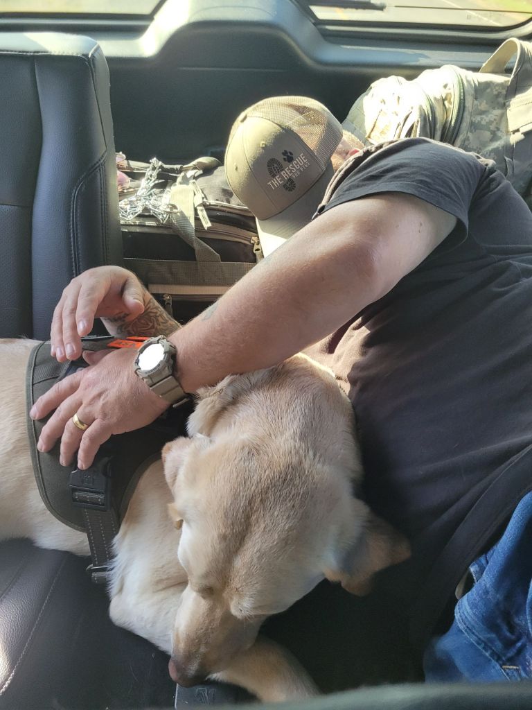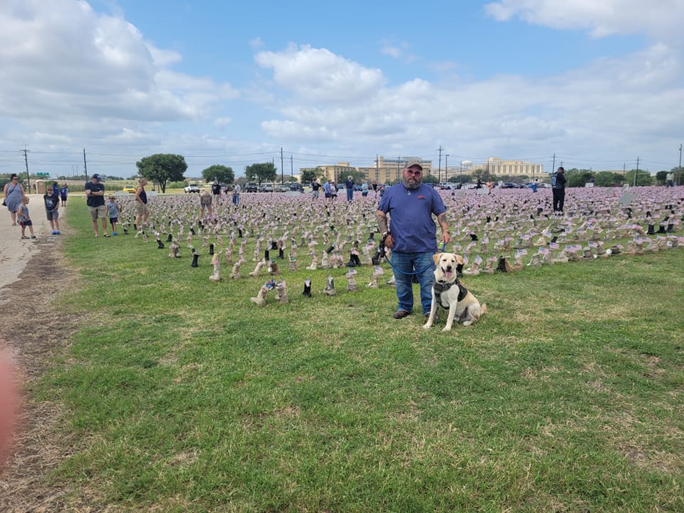 “Let me take just a moment to tell you about Gus and how the Rescue for PTSD has changed my life. Since the day this amazing organization accepted me into the program, I have felt a part of a group that has shared similar experiences and just understands. From the second I met Gus, I felt a connection. He has been my partner and friend since day one. He reminds me to be calm, and he keeps the peace when things start to feels overwhelming. He honestly has improved my daily life so much. I cannot put into words how much of a positive impact Gus has had on my life. Thank you.”