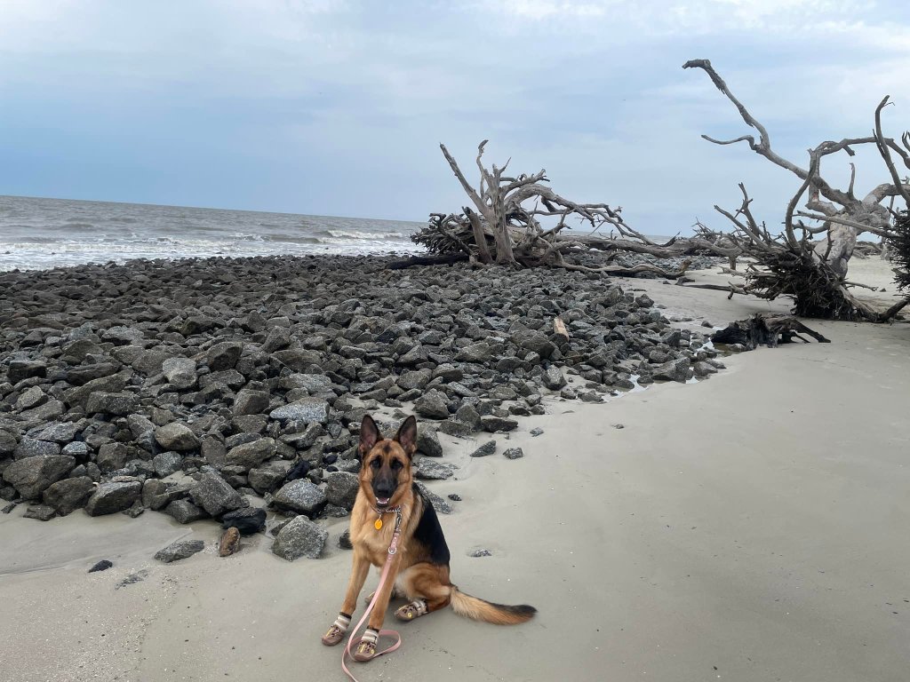 Inde goes everywhere with Alisha and puts up with whatever Alisha asks her to wear. She loves to play fetch and go to the beach. She also hits up breweries on the weekends. And this girl is no stranger to a rodeo!
