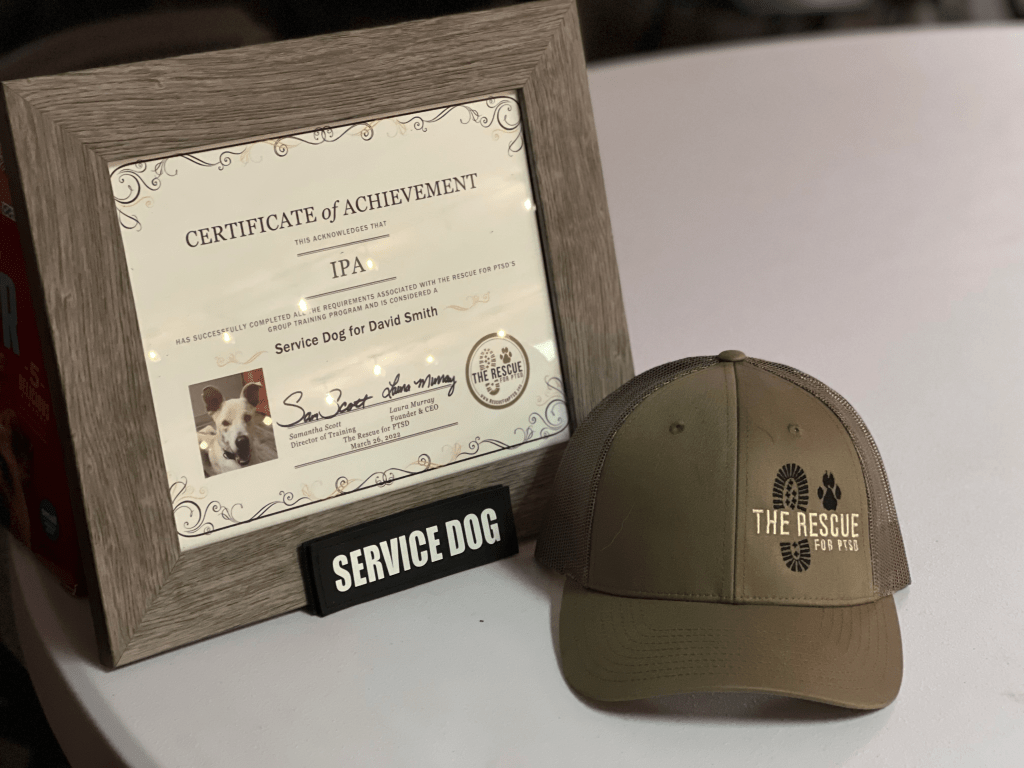 “I am deeply grateful for the love I receive from both Ipa and the Rescue for PTSD. Ipa has been a life-saver. As he heals by my side, I feel comfort in the fact that he is aware of our surroundings. I feel much relief knowing he has my back. He is a big baby when off duty, but when he is on duty, he is a steadfast and calm companion. He has given me hope! I am forever grateful for Ipa and the Rescue for PTSD.”
