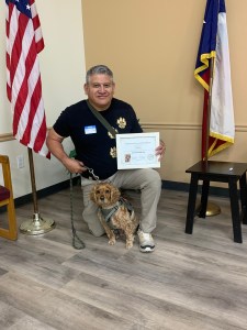 Congratulations to our recent Group Training Program Graduates, these Veterans have worked so hard training their dogs with our assistance at monthly class. These teams have passed their AKC Canine Good Citizen tests, the ADA Public Access test, and all of The Rescue for PTSD’s requirements to be service teams. Way to go all, we are so proud of you! We would also like to thank TomballRegionalHealthFoundation for all their support of our Group Program!