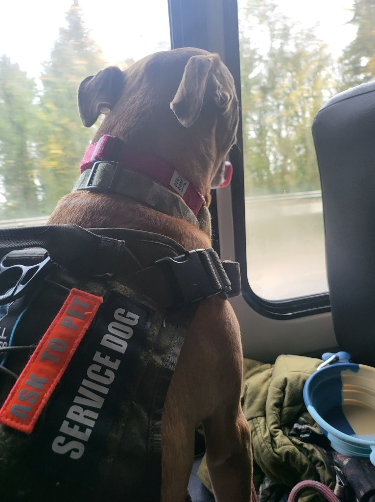 “The Rescue helped me tremendously making sure my dog Tank was trained for what I needed. Having Tank as my service dog has made my life immensely better. I love to travel, and now being able to have Tank with me makes it less hectic and stressful. When out in public, I don’t feel like I have to keep scanning the room because I have Tank to do that for me. I am forever grateful for the Rescue helping make my life better.”
