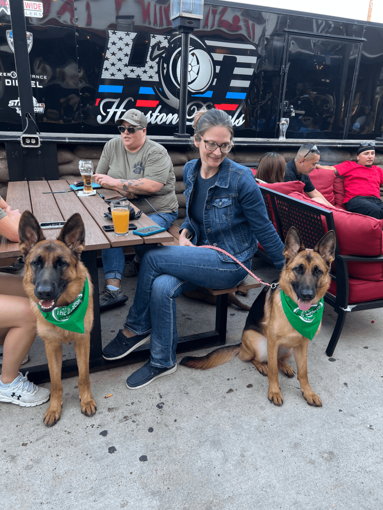 “I can’t say enough about the Rescue for PTSD. Having already had a GSD for several years, I had a great desire to have Drake trained as a Service Dog. Although we initially started out very hesitant due to past experienced, the Rescue for PTSD encouraged us to get outside of our comfort level and grow as a team. It was truly difficult to come in for the first time. But seeing how Drake reacted to my anxiety during the initial training classes, I knew this was the place for us. The small class size offered an environment where we felt safe, and the interactions of the other veterans, volunteers, and staff were truly caring. This environment allowed me to focus more on Drake, rather than my anxiety levels due to the things around me. Thanks to the Rescue for PTSD, we now have a place to relate to others, care for others, and a sanctuary where I know I am not the only one out here who struggles. Since Drake and I have become a team, we go everywhere together, including places I wouldn’t have even considered in the past.”